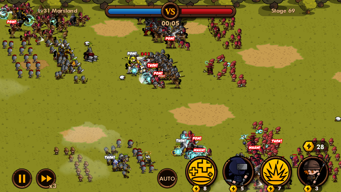 전투 화면의 UI도 깔끔하게 바뀌었으며 우측 하단에 "사기" 라고 불리우는 것들을 사용할 수 있게 추가가 되었네요. 좌측부터 전쟁의 축복, 닌자, 폭발, 민병대입니다. 자이언트는 레벨 32에 사용할 수 있습니다.