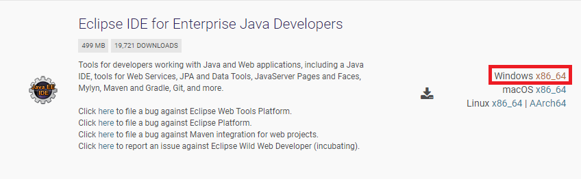 위의 이미지처럼 eclipse-jee-2020-12-R-win32-x86_64.zip 링크를 클릭하여 압축파일을 다운로드하도록 합니다.